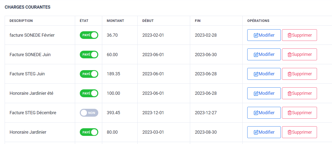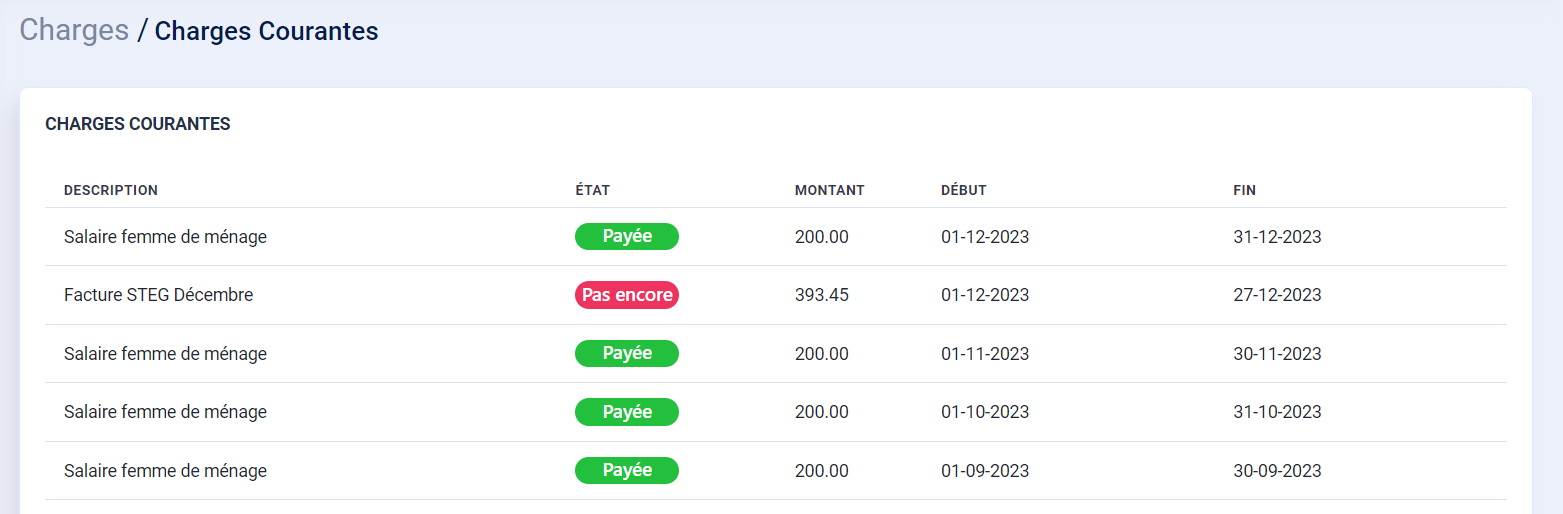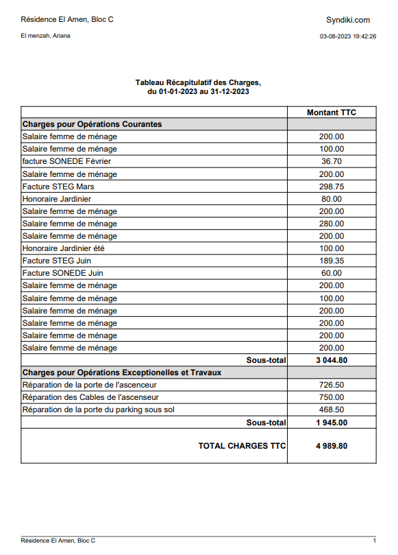 Gérez les charges en toute simplicité d'un simple clic. Toutes les mises à jour sont automatiquement prises en compte, du tableau de bord aux tableaux et fichiers PDF.